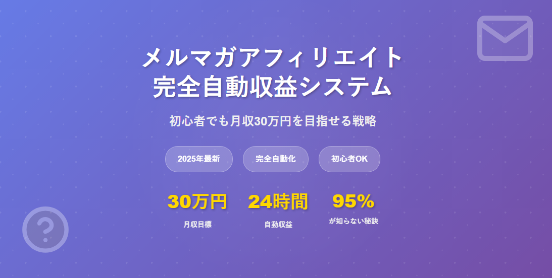 実際に、適切な戦略を実行すれば月収30万円以上の自動収益システムを構築することも可能です。本記事では、初心者でも実践できるメルマガアフィリエイトの完全ガイドをお届けします。