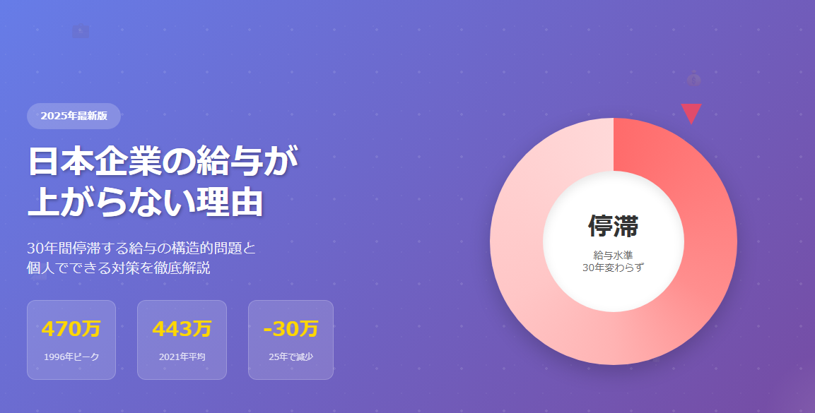 日本の給与停滞は複合的な要因により生じている構造的問題です。解決には時間がかかりますが、以下の点を意識することで個人レベルでの対策は可能です: