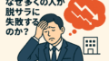 1. 資金計画の甘さ 「何とかなるだろう」という楽観的な思考で、具体的な資金計画を立てずに脱サラしてしまう人が圧倒的に多いです。