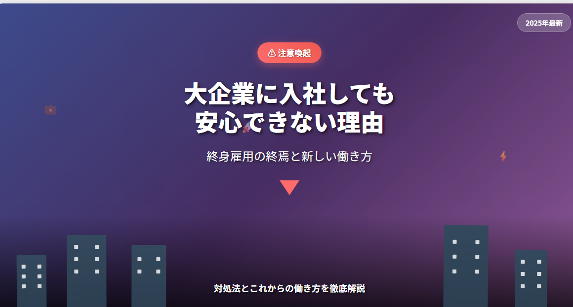 就職活動で念願の大企業や優良企業から内定をもらった時、多くの人が「これで一生安心」と感じるでしょう。しかし、2025年現在、大企業への就職が必ずしも安定を意味しない時代になっています。