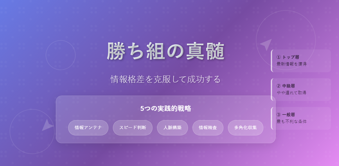 情報格差は現実として存在します。しかし、それを嘆くだけでは何も変わりません。重要なのは: