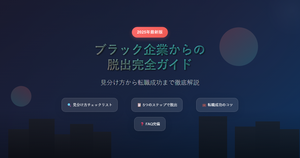 この記事では、2025年最新の情報をもとに、ブラック企業の実態から脱出方法まで、あなたが今すぐ行動できる具体的な解決策をお伝えします。
