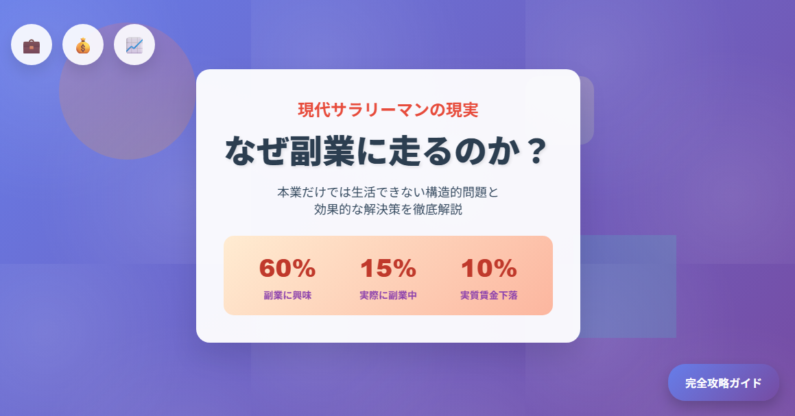 現代のサラリーマンを取り巻く環境は確かに厳しいものがあります。しかし、適切な戦略と実行力があれば、副業から始めて経済的自立を達成することは十分可能です。