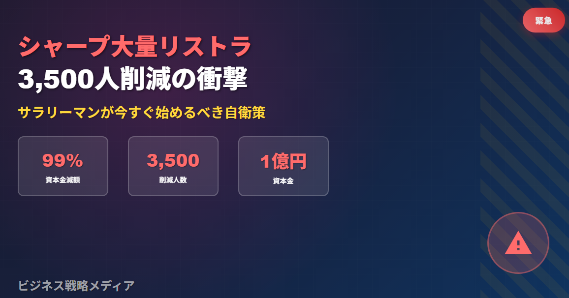 シャープの決断は、日本の雇用環境の根本的な変化を象徴しています。この現実を受け入れ、今すぐ行動を起こすことが、将来の安定につながります。