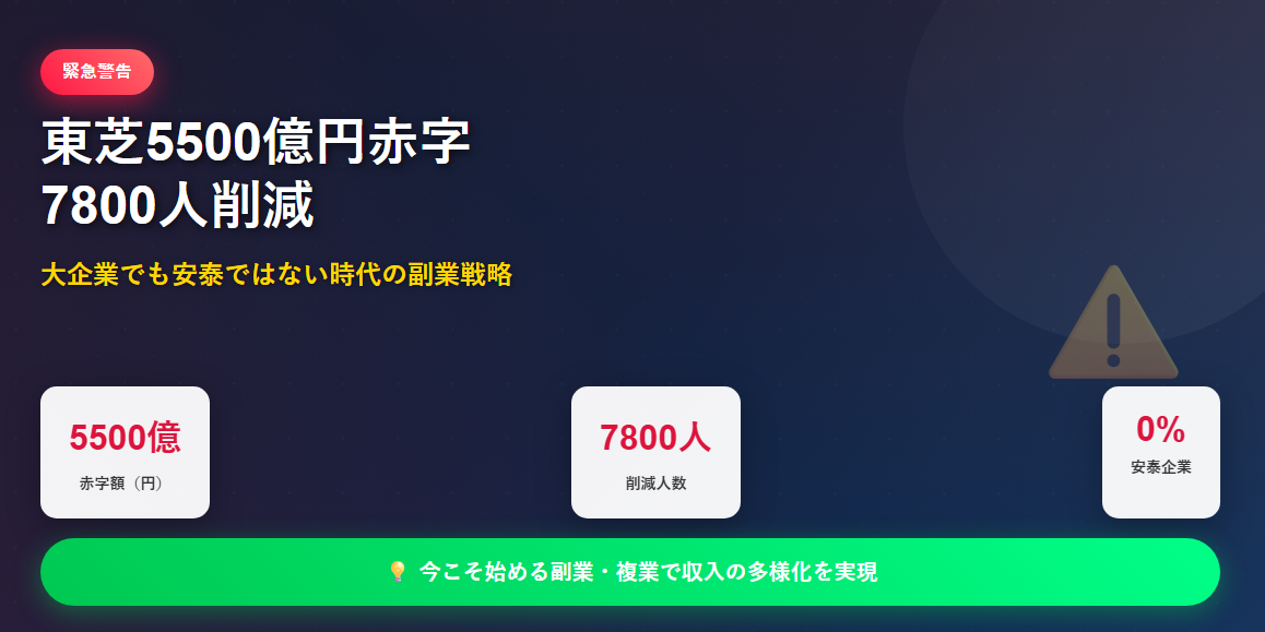 会社員という安定した立場にいる今だからこそ、リスクを抑えながら新しいチャレンジができます。東芝の教訓を活かし、自分の人生を自分でコントロールできる力を身につけましょう。
